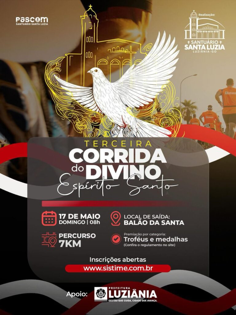 A tradicional Corrida do Divino Espírito Santo chega à sua terceira edição em Luziânia, reforçando o espírito de fé, saúde e união entre os participantes. O evento será realizado no dia 17 de maio (domingo), com largada prevista para 8h, no Balão da Santa, ponto conhecido da cidade e próximo ao Santuário Santa Luzia.