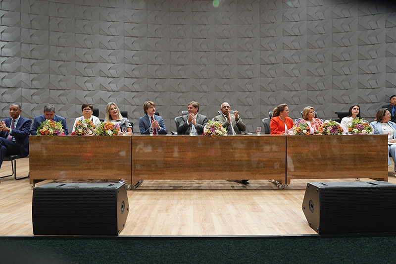 Diversas autoridades e lideranças políticas de Goiás participaram da instalação da Procuradoria Especial da Mulher na Assembleia Legislativa.