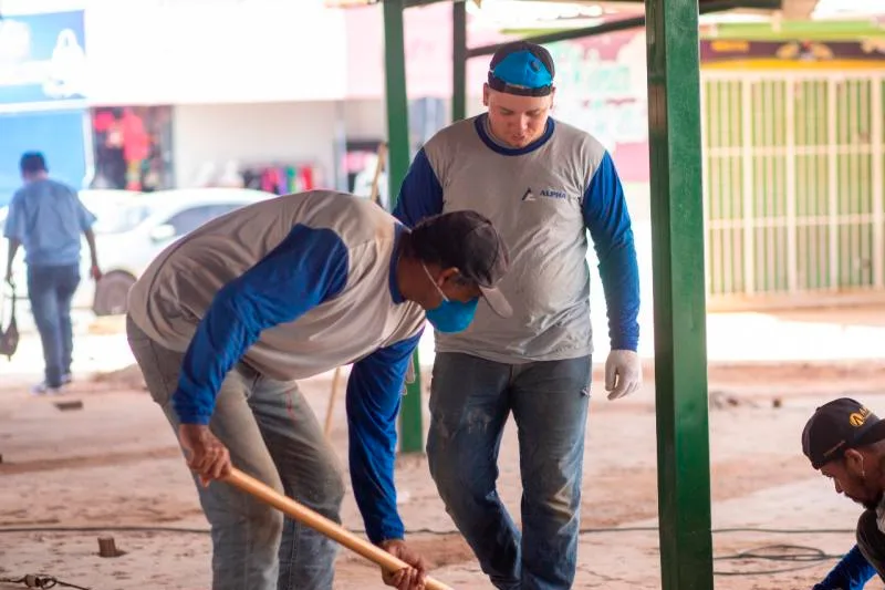 Na manhã desta terça-feira (09), a Prefeitura Municipal, através da Secretaria de Obras, deu continuidade às obras de concretagem do piso na praça de alimentação